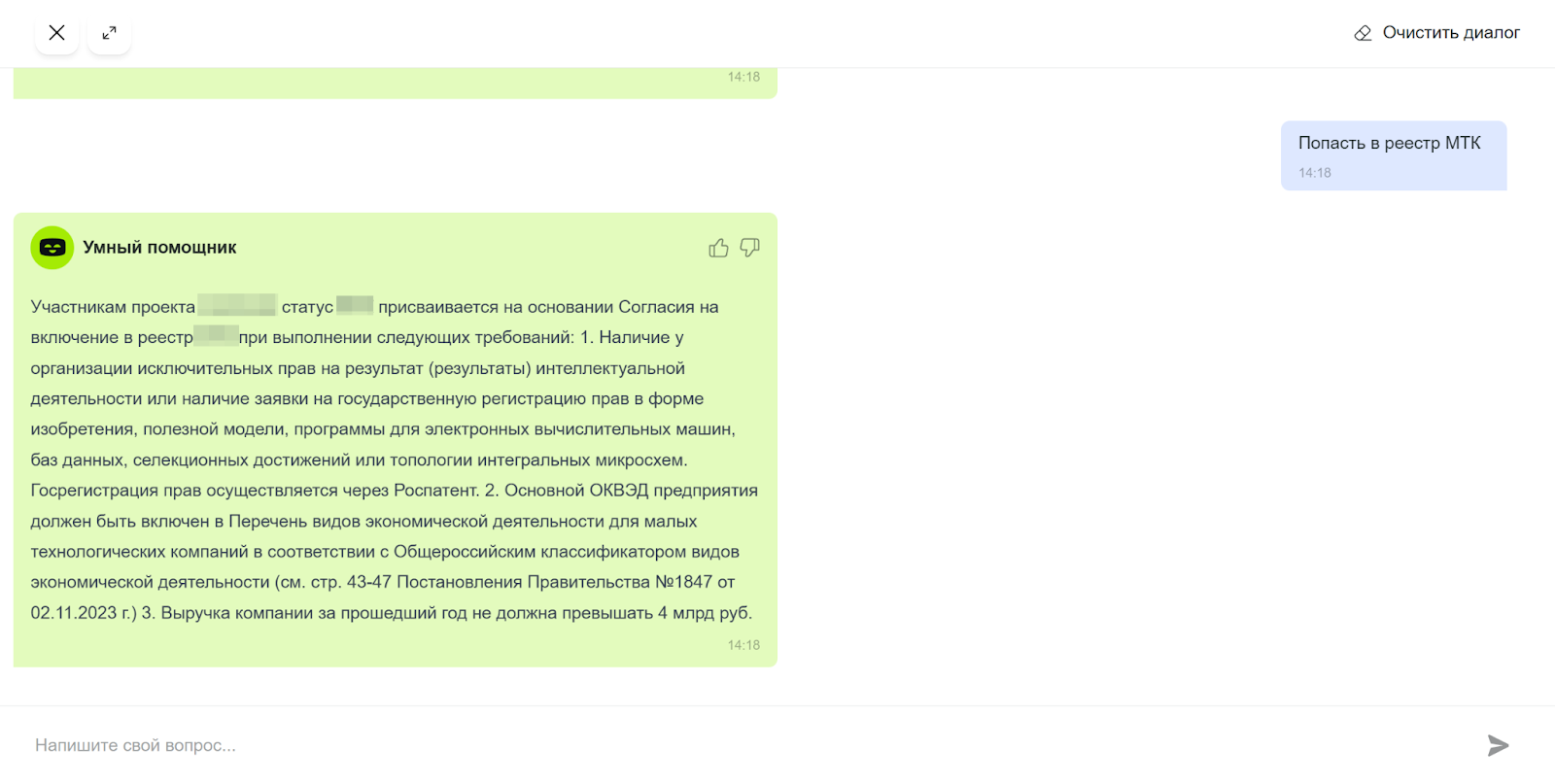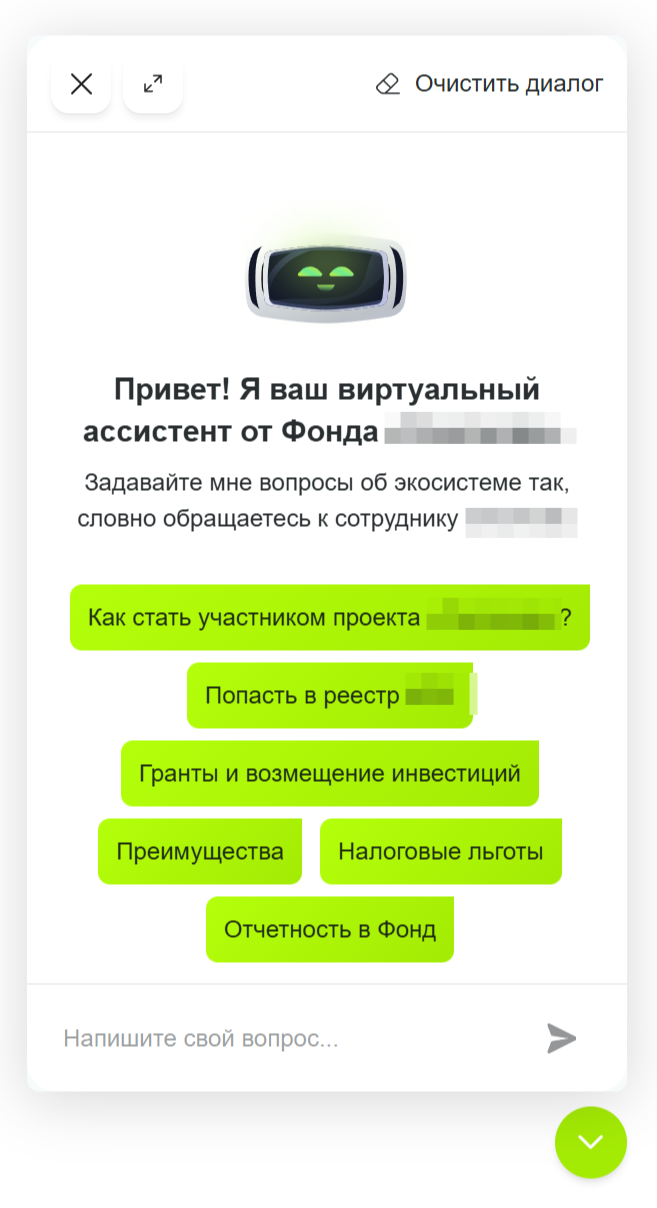 AI-ассистент для сайта и личного кабинета крупного инновационного центра